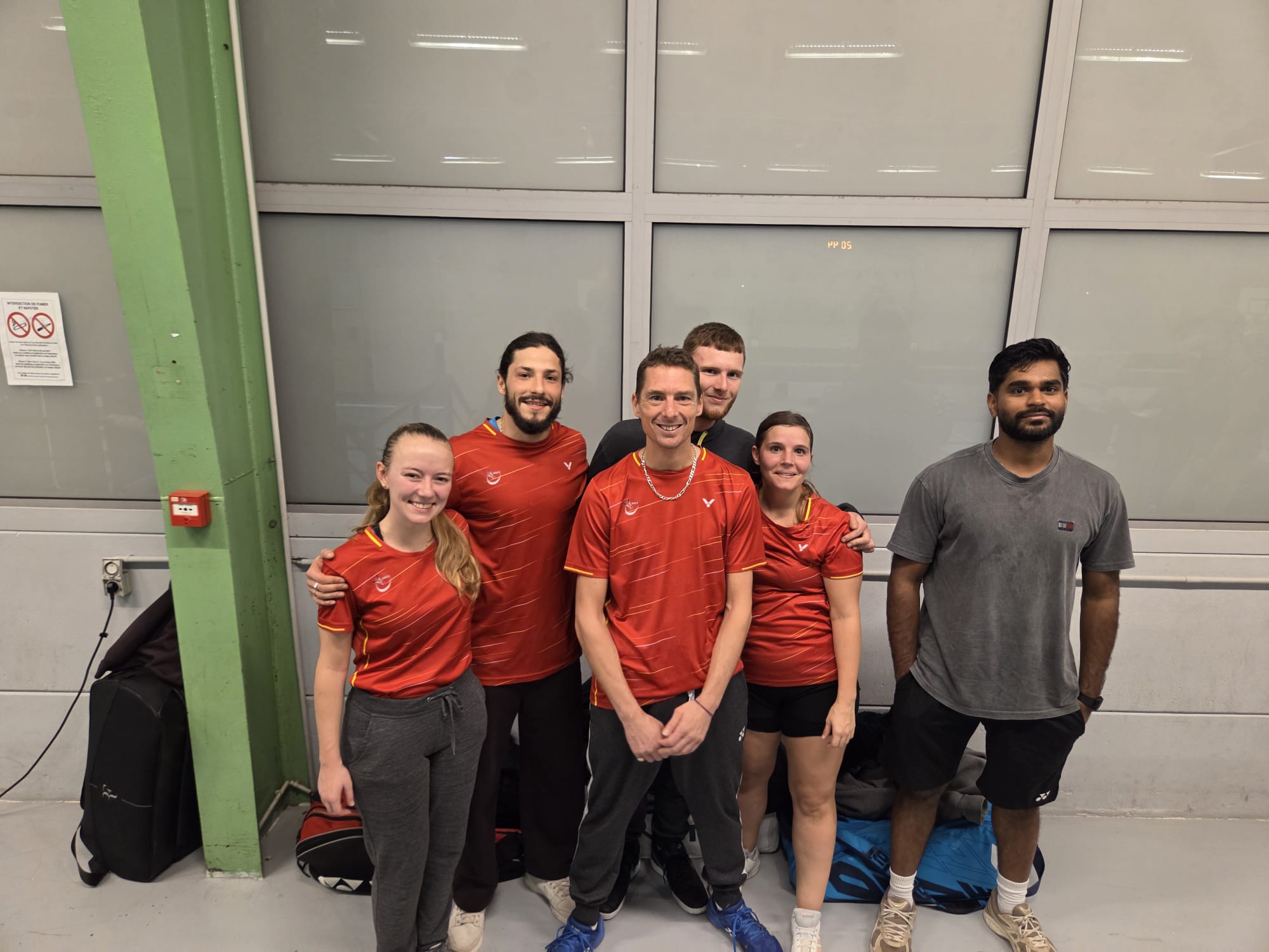 Les simple dame 2 et le simple homme 1 sont lancés. Alice outsider, Melvin ultra favori. Alice à du mal a rentrer dans son match et perd logiquement le premier set 21-13 mais arrive a se reprendre. Un peu tard ce qui lui laisse quelques regrets car elle accroche le 2eme 21-19. C'est pas passé loin d'un 3ème set qui aurait vraiment pu être en sa faveur. Merci Alice pour avoir tout donnée avec nous. Melvin quand à lui fait un premier set moyen à cause d'un déplacement mal maîtrisé qui lui fait une douleur au genou. Il arrive tout de même à remporter le. premier set 21-18 et le 2ème beaucoup plus largement 21-11. Nous en sommes à 4-2 et plus qu'un. match pour obtenir la victoire.
