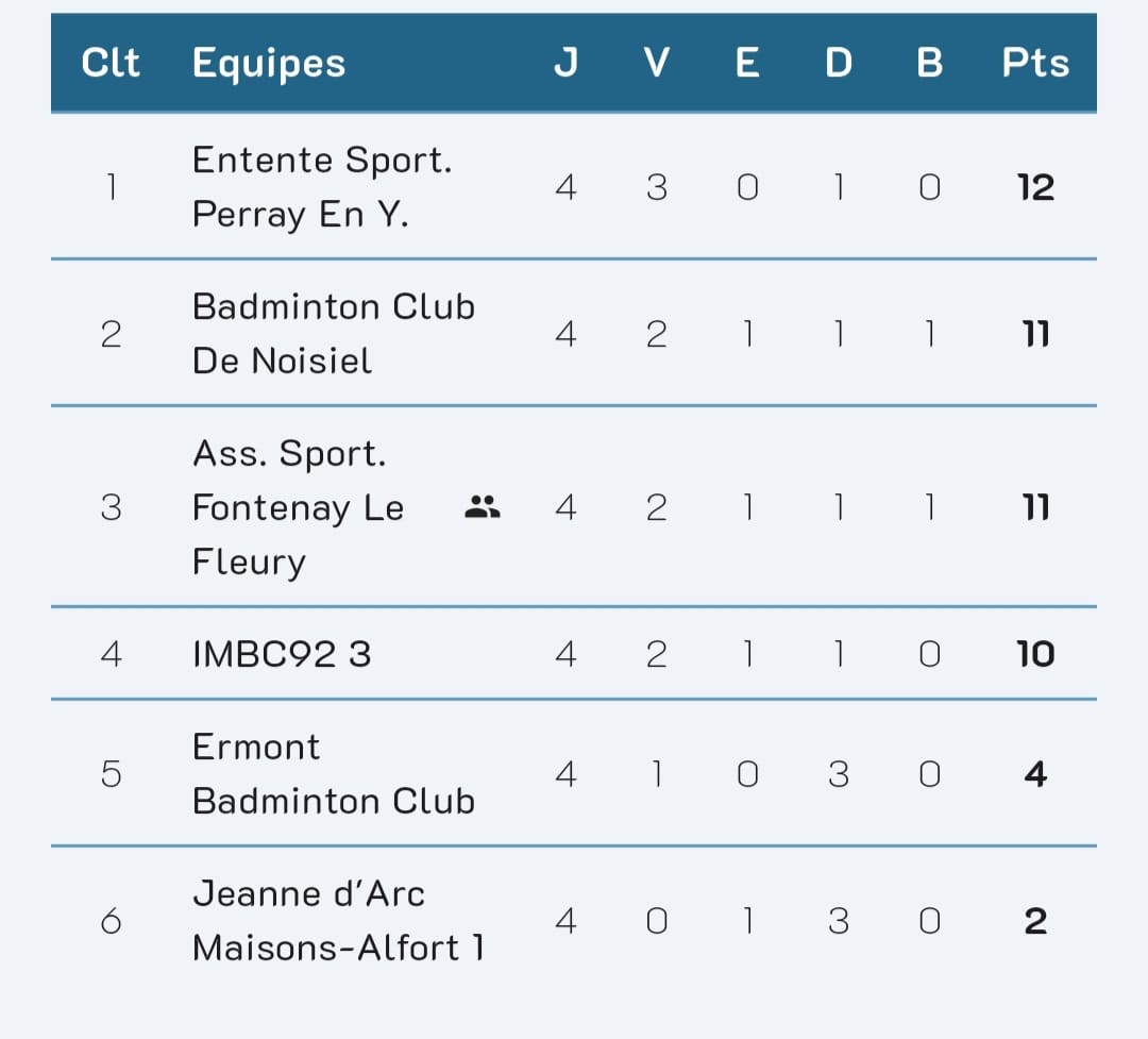 Victoire 6-2 comme sur la première rencontre ce qui nous permet de revenir dans la course à la montée. Nous passons de avant dernier à 2ème exaquo. La prochaine rencontre est à domicile le 14 décembre. Nous vous y attendons nombreux pour nous encourager. Nous jouerons la première rencontre contre les 2ème comme nous et l'autre contre les premiers. Nous viserons 2 victoires à domicile avec un public qui nous donnera des forces. :)